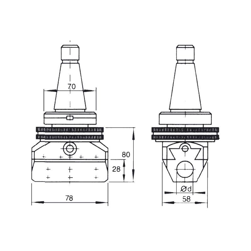 Precision boring head for drilling, restarted, interior and exterior cut, cones, displacement and threading. Application range of 5 250 mm. Scale of 0.01 mm