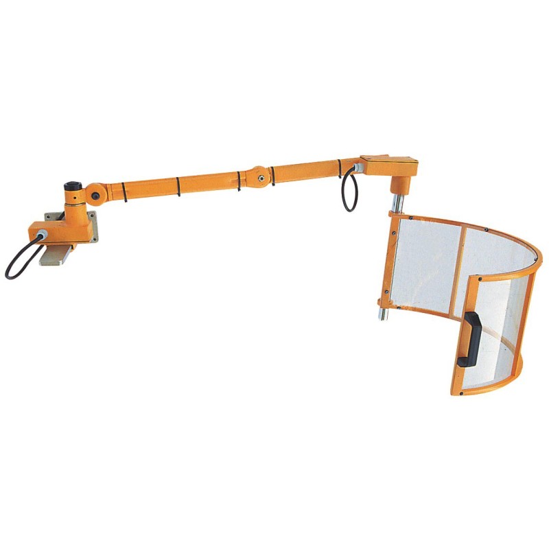 Articulated aluminum protector with microswitch for milling machine, Ø600 mm. Provides active security during machining, with robust structure and transparent screen for maximum visibility. Easy adjustment and great durability.