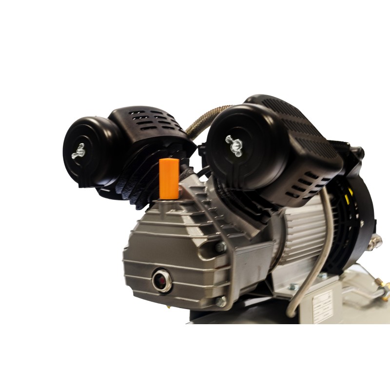 Direct transmission compressors with "V" head. Lubricated with oil. Light and compact. Long-lasting steel casting cylinder. Equipped with two manometers, transport wheels and handle. High level of security.