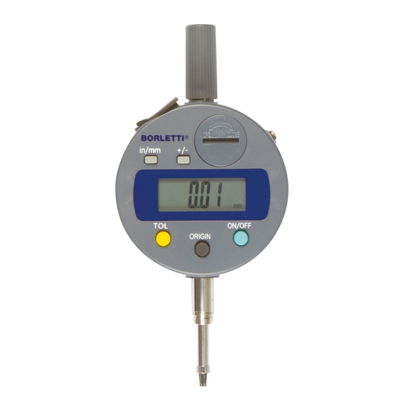 12.7 mm centesimal digital comparator, with high precision and easy reading. Ideal for fine measurements in dimensional control, with digital screen and compact design.