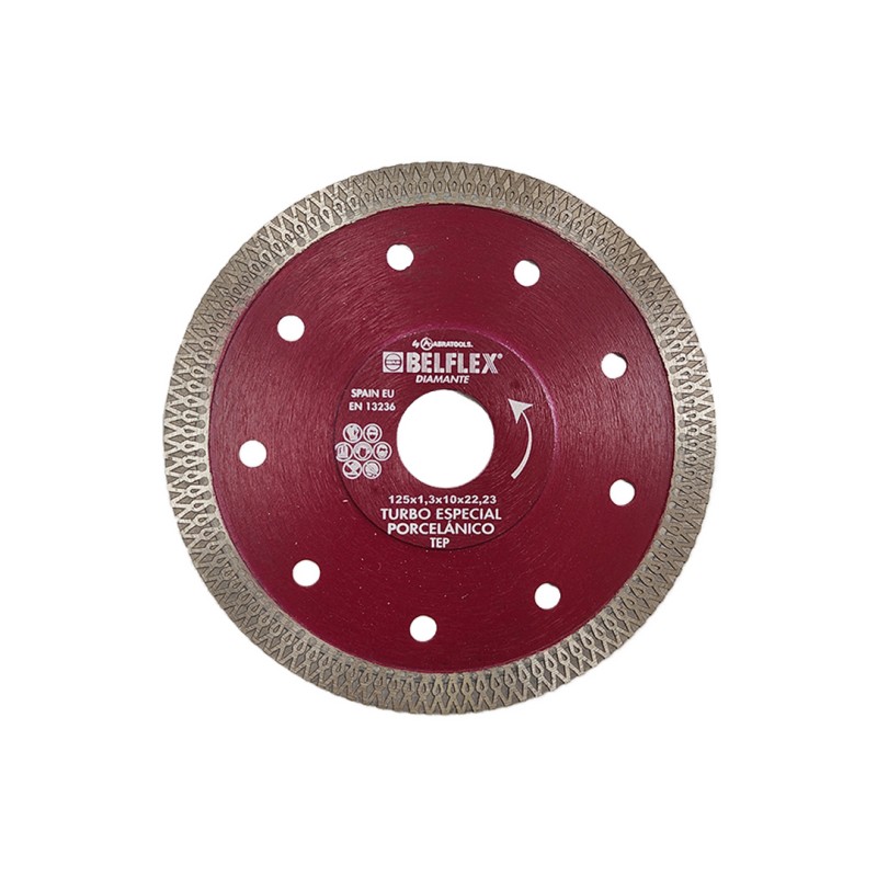 Belflex Special Turbo Diamond Disc, designed for precise and fast cuts in hard materials such as Silestone, tiles, porcelain stoneware, marble and granite. It offers high durability, efficient refrigeration and a clean finish, ideal for professional jobs in construction and reform