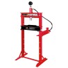 Pressing by hydraulic cylinder, manual pump and manometer, adjustable table in height.