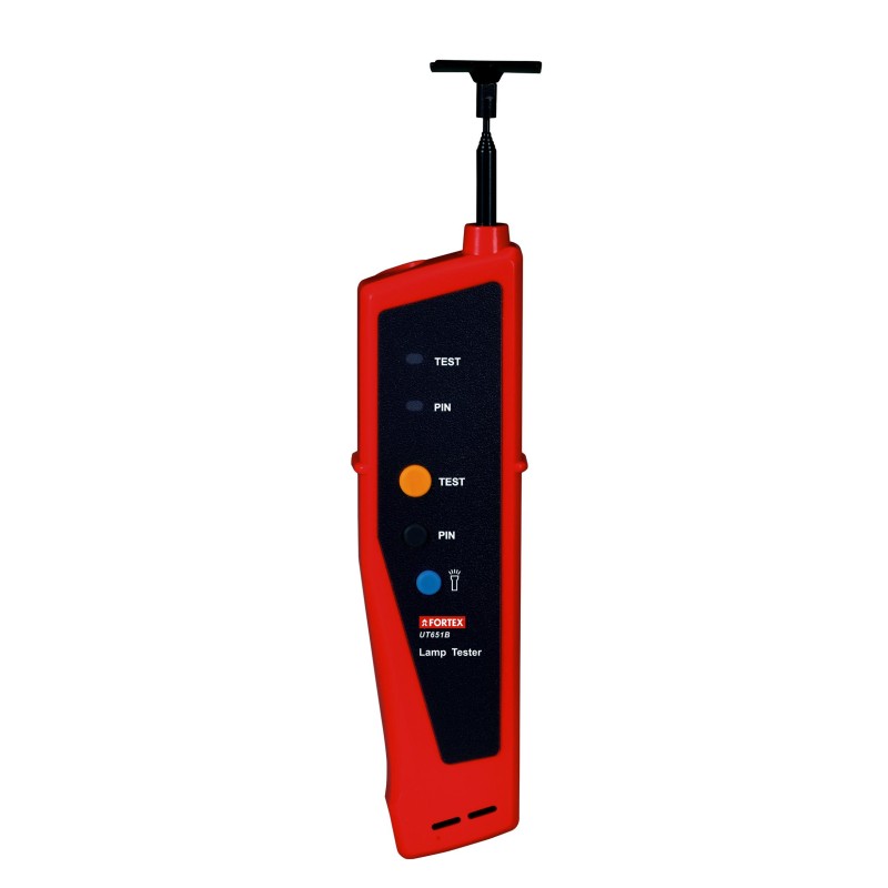 Lamp tester, make the power on and off to check the working conditions of different types of lamps. Linera function. Extensible antenna. Around 3000V. Automatic shutdown, low battery indicator. LED alarm. CAT II 300V. UL61010-1, EN61010-1, EN61010-2-030, EN61326-1.