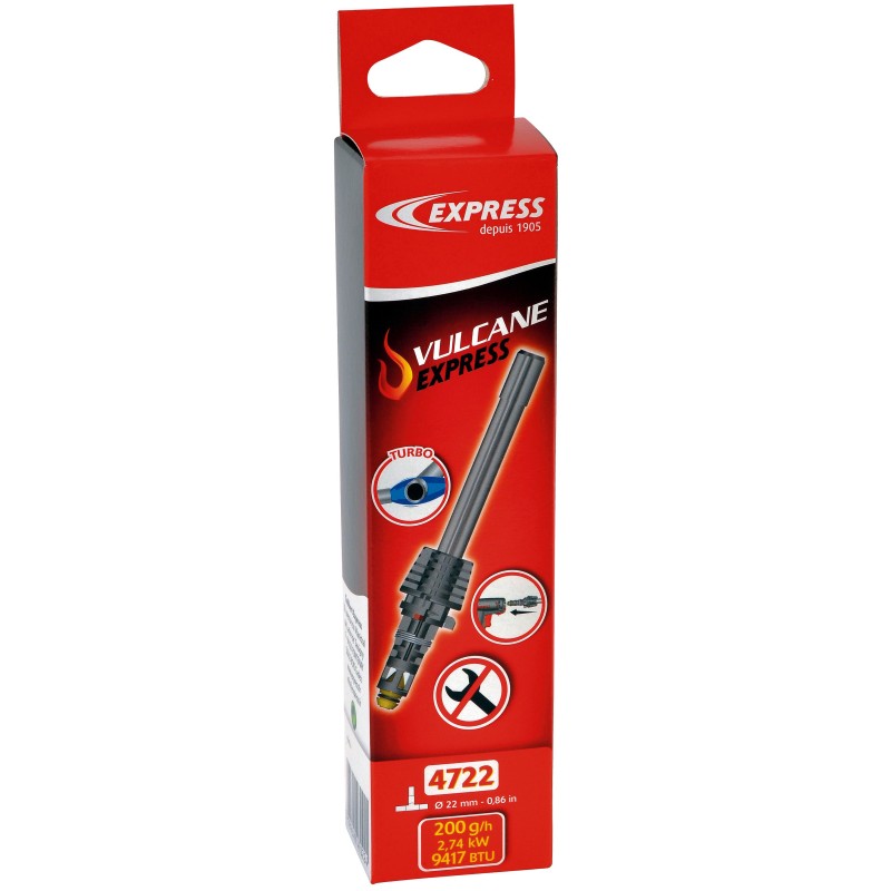 With its MAP / PRO cartridge and a heating temperature of 2400 ° C, for a power that can reach 3.5 kW (launches ø28), Vulcane EXPRESS, thanks to its envelope turbo flame, it even better distributes the heat along the perimeter of the tube. His just 400 gr. It makes it an easy product to manipulate with a low difficulty index. The command can activate 3 positions: assembly / disassembly, lock and mode of operation. Thanks to your trigger with 2 ignition modes, 1 single click enough to move from continuous mode to intermittent mode.