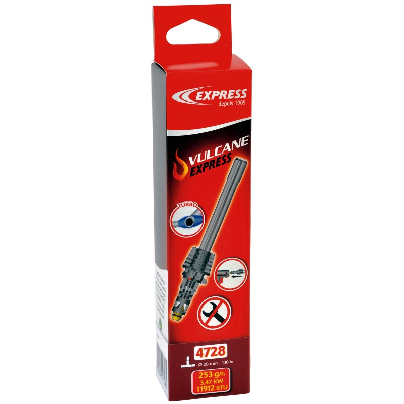 With its MAP / PRO cartridge and a heating temperature of 2400 ° C, for a power that can reach 3.5 kW (launches ø28), Vulcane EXPRESS, thanks to its envelope turbo flame, it even better distributes the heat along the perimeter of the tube. His just 400 gr. It makes it an easy product to manipulate with a low difficulty index. The command can activate 3 positions: assembly / disassembly, lock and mode of operation. Thanks to your trigger with 2 ignition modes, 1 single click enough to move from continuous mode to intermittent mode.