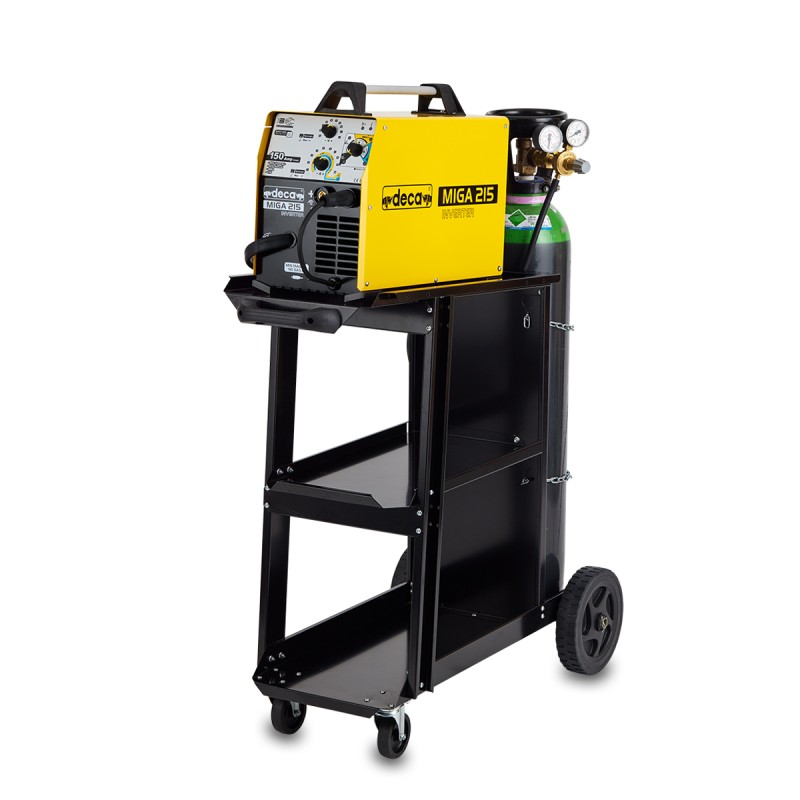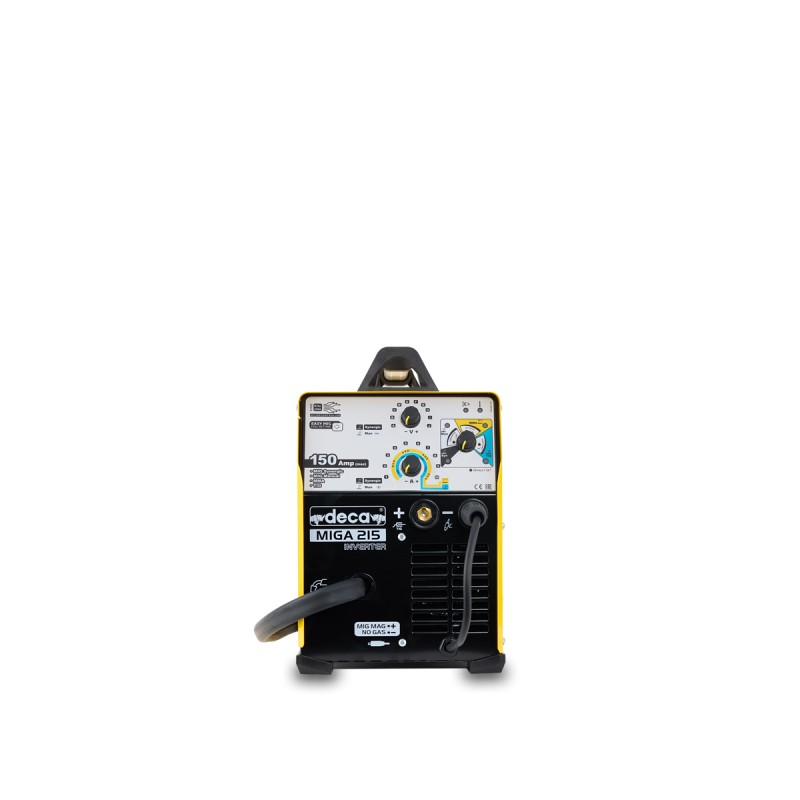 MIGA 215 Supplied 150 AMPERIOS OF DNEW CURRENT (CC). The supply voltage is single-phase 230 volts.