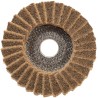 Discs with fiberglass base and non-woven fabric sheets (Scotch type) inserted in radial enthusions. Discs for surface conditioning, indicated for polishing and stainless steel nuanced, non-ferrous metals, glass, plastic and gum. Discs with Fiber Glass Support and Non-Wowen Cloth Flaps (Scotch Type). Sur Sur Fiber de Vere et à Lamelles de Tissu Abrasif (TIP SCOTCH).