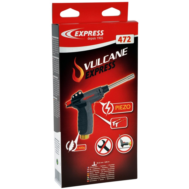 With its MAP / PRO cartridge and a heating temperature of 2400 ° C, for a power that can reach 3.5 kW (launches ø28), Vulcane EXPRESS, thanks to its envelope turbo flame, it even better distributes the heat along the perimeter of the tube. His just 400 gr. It makes it an easy product to manipulate with a low difficulty index. The command can activate 3 positions: assembly / disassembly, lock and mode of operation. Thanks to your trigger with 2 ignition modes, 1 single click enough to move from continuous mode to intermittent mode.