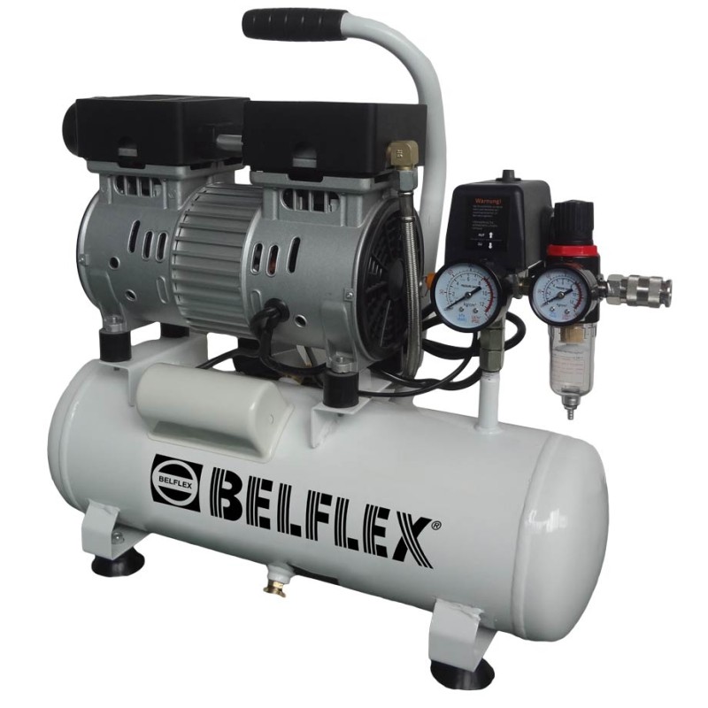 Silent portable compressor. Powerful 1.5 HP engine ideal for interior and outdoor work such as blowing, swelling and optimal for the use of pneumatic stack and stapler. Ultrasilencioso. Maintenance-free compressor, has no oil. It can be transported in any position, even lying. Double air outlet.