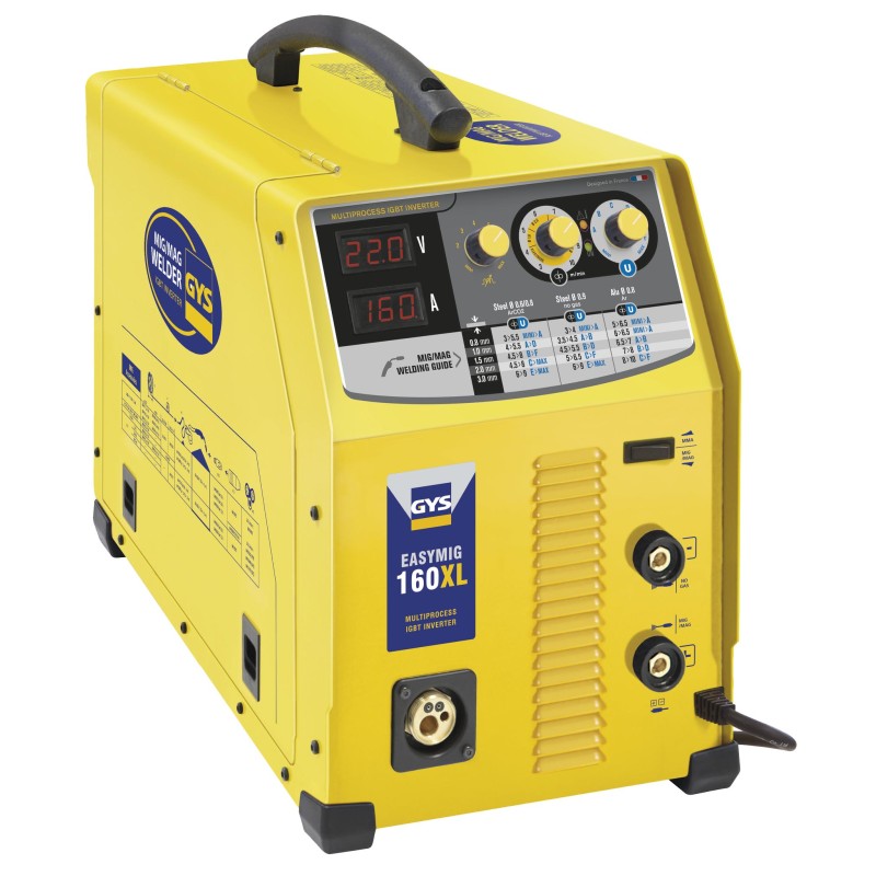 Easymig 160 XL is a semi-automatic equipment that combines the MIG / MAG welding processes, coated thread and MMA. Its intuitive interface includes digital indicators for simple and precise settings. Ultra-light: Very easy to transport. The Easymig 160 XL is recommended for steel welding, stainless steel and aluminum.