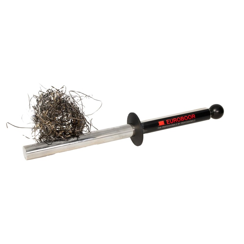 - Simply shake the magnetic bar on the metal shavings to pick them up, take them to your scrap barrel, pull the plunger and chips are placed neatly.