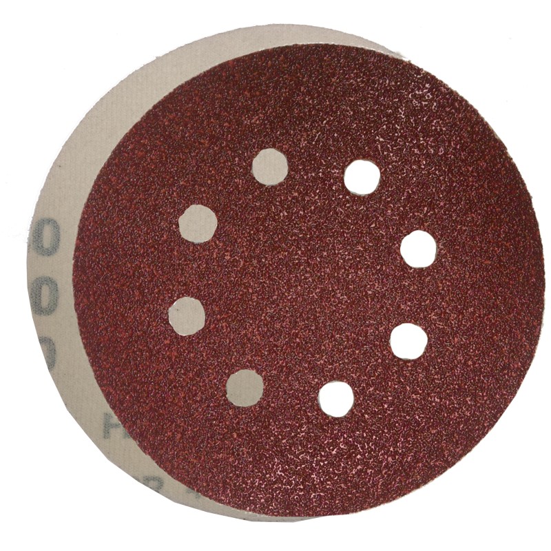 Paper sheets on brown aluminum oxide, indicated for wood, paintings, finish on the metal. Exceptional removal of material. Double resin, semi-open structure, type E (223 GRM2). Presentation: Box of 50 discs and retractable of 25 units. 115-8: Bosch, Kress, Peugeot, Ryobi and Skil. 125-8: Bosh, AEG, Atlas, B & D, Dewalt, Elu, Fein, Festo, Hitachi, Kress, Makita, Metabo, Peugeot, Skil and Ryobi. 150-6: Bosch, Dewalt, Flex, Hitachi, Kress, Metabo and Peugeot.