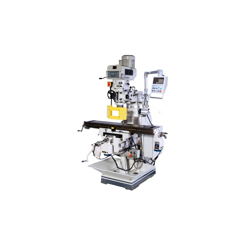 Fresadoras de torreta profesional con transmisión por engranajes, de robusto diseño. Variador de velocidad continuo. Cola de milano. Superficie de la mesa grabada y endurecida. Avances automáticos ejes X-Y-Z. Caja control Deluxe. Sistema métrico. Inclinación cabezal +-90º . Engrase centralizado. Máquinas fabricadas según normas CE.