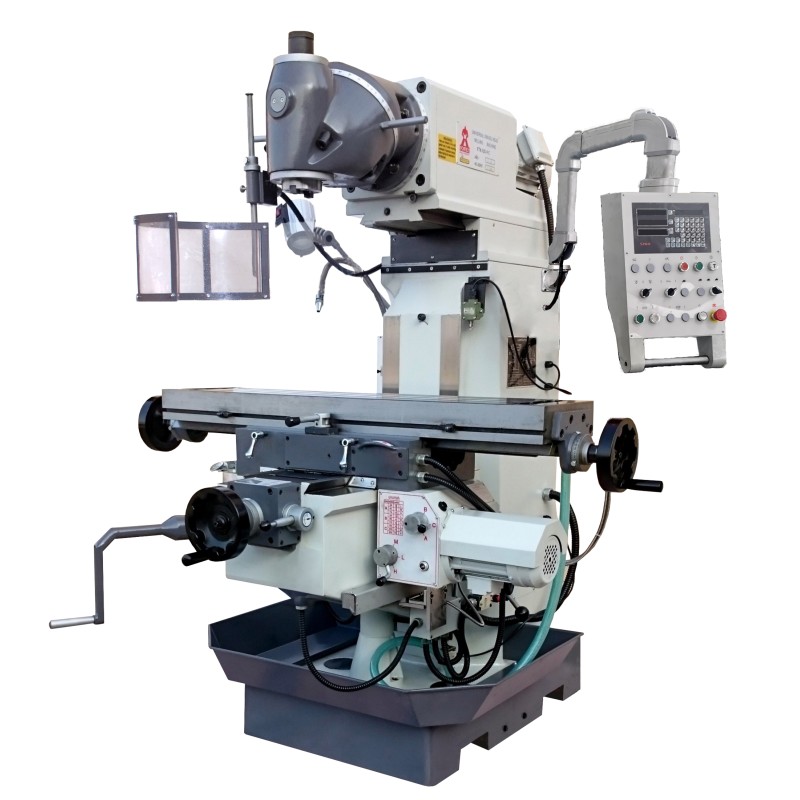 Fresadora universal profesional con transmisión por engranajes, de robusto diseño. Mesa de coordenadas de alta precisión. Columna de cola de milano. Cabezal de fresador regulable. Avances automáticos ejes X-Y-Z montado de serie. Máquinas fabricadas según normas CE.
