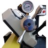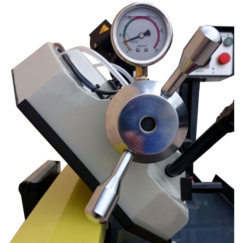 Mordaza. Cabezal giratorio 0-60º. Bomba de refrigeración con doble circuito. Descenso del cabezal con selector de bajada manual o hidráulica. Facilidad de ajuste del ángulo de corte. Paro automático al finalizar el corte. Guía de hoja apoyada sobre doble tren de rodamientos de bolas. Interruptor de emergencia. Interruptor de seguridad de apertura de tapa. Interruptor de seguridad de la tensión de la hoja. Manómetro de tensión de hoja. Máquinas fabricadas según normas CE.
