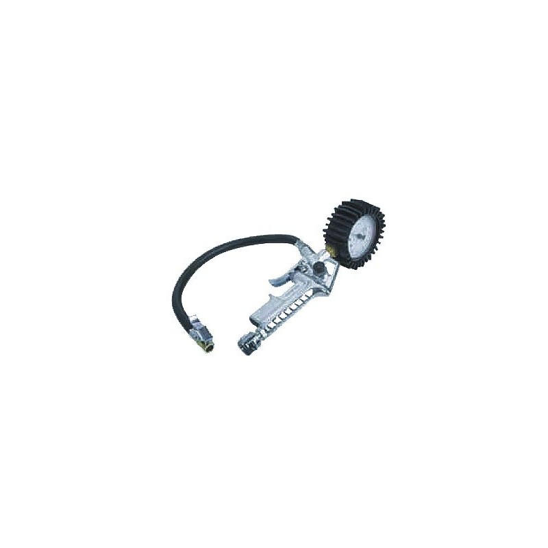 Pistolet d'inflation avec manomètre intégré, conçu pour mesurer et contrôler la pression lors de l'inflation de pneus et d'autres équipements. Précis, ergonomique et facile à utiliser.