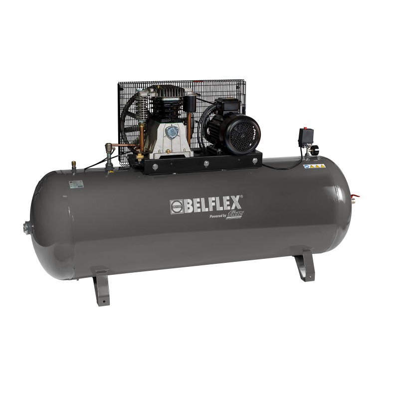 Compresseur de transmission de la courroie. Haute performance longue durée. Vannes en acier inoxydable. Refroidissement optimal de l'air. Garde de ceinture intégrée. Avec Star-Triangle Start.