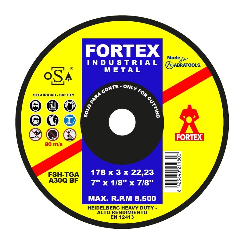 Coupe et fer à repasser en acier, particulièrement adapté aux tubes, profils et serruriers en général. Performance équilibrée. Cela ne laisse pas bavardage. En 12413 80 m / s. Dureté longue vie: semi-dur.