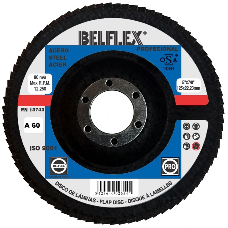 Ligne professionnelle - indiquée pour la meulage légère de surfaces extérieures, des aciers, de soudage, de matériaux d'alliage, d'aluminium et de bois (corindum). Disques avec support en fibre de verre et feuilles de tissu abrasives à Corundum, insérées dans des enthousiastes radiales. Fabriqué sous normatif en 13743.