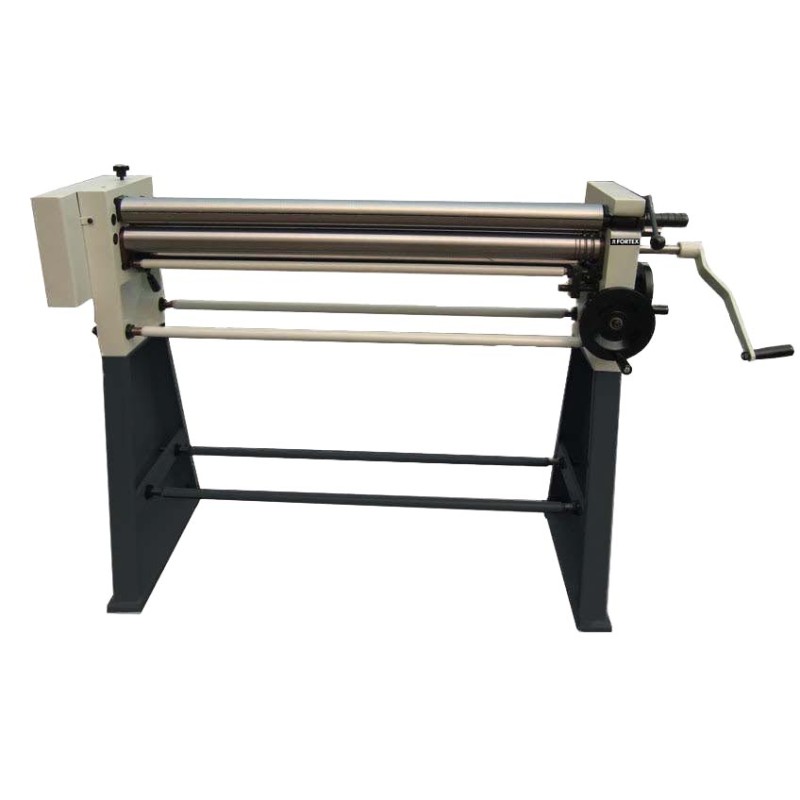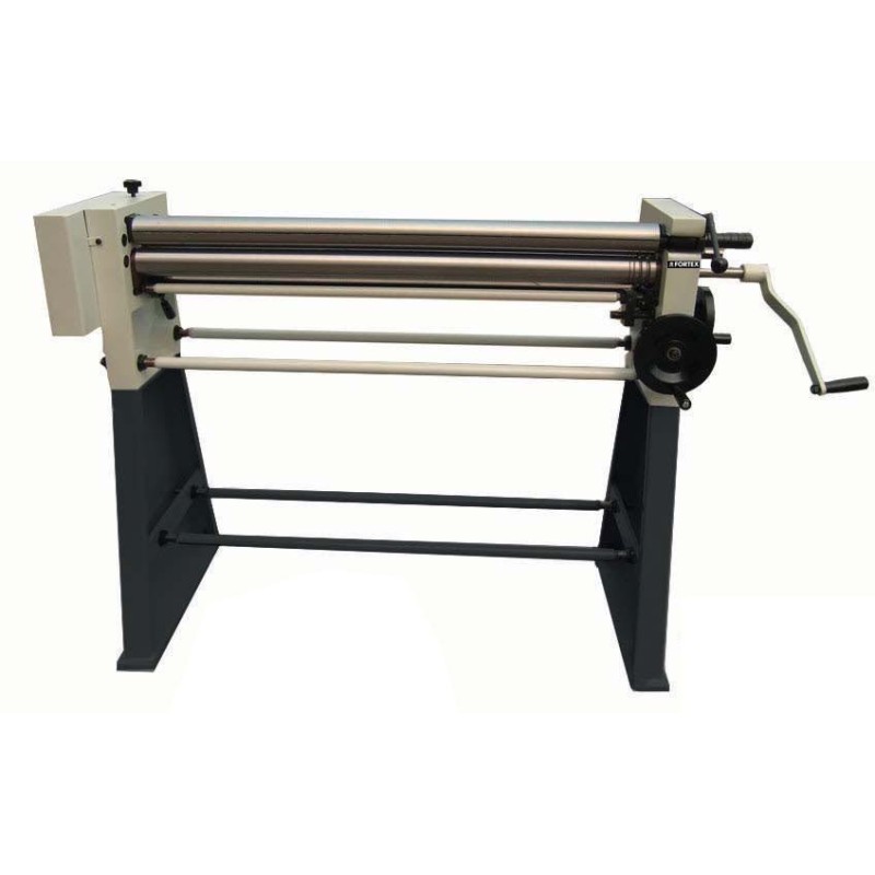Rouleau supérieur à libération rapide. Deux vitesses d'avance pour différents matériaux. Distance entre les rouleaux réglables au volant. Extrêmes des rouleaux inférieurs ondulés pour la préparation des bagues. Piédestal inclus. Le rouleau arrière peut être mal aligné d'un côté pour la conique courbe.