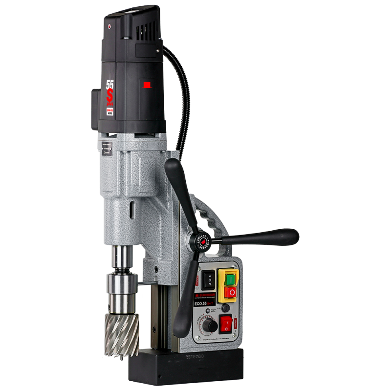 L'exercice de base magnétique Euroboor Eco.55SS + / T bénéficie non seulement de la technologie Smart Redémarrage, ainsi que d'un écran numérique montrant la charge de travail idéale, mais a également une boîte de vitesses lubrifiée avec chauffée. L'électronique innovante, qui offre plus de sécurité, réduit considérablement le risque de dommage de la machine, de l'outil et de la pièce et protège l'utilisateur en cas de vibrations excessives ou de déplacement soudain. La durée de conservation est considérablement plus longue et évite les coûts de maintenance élevés.