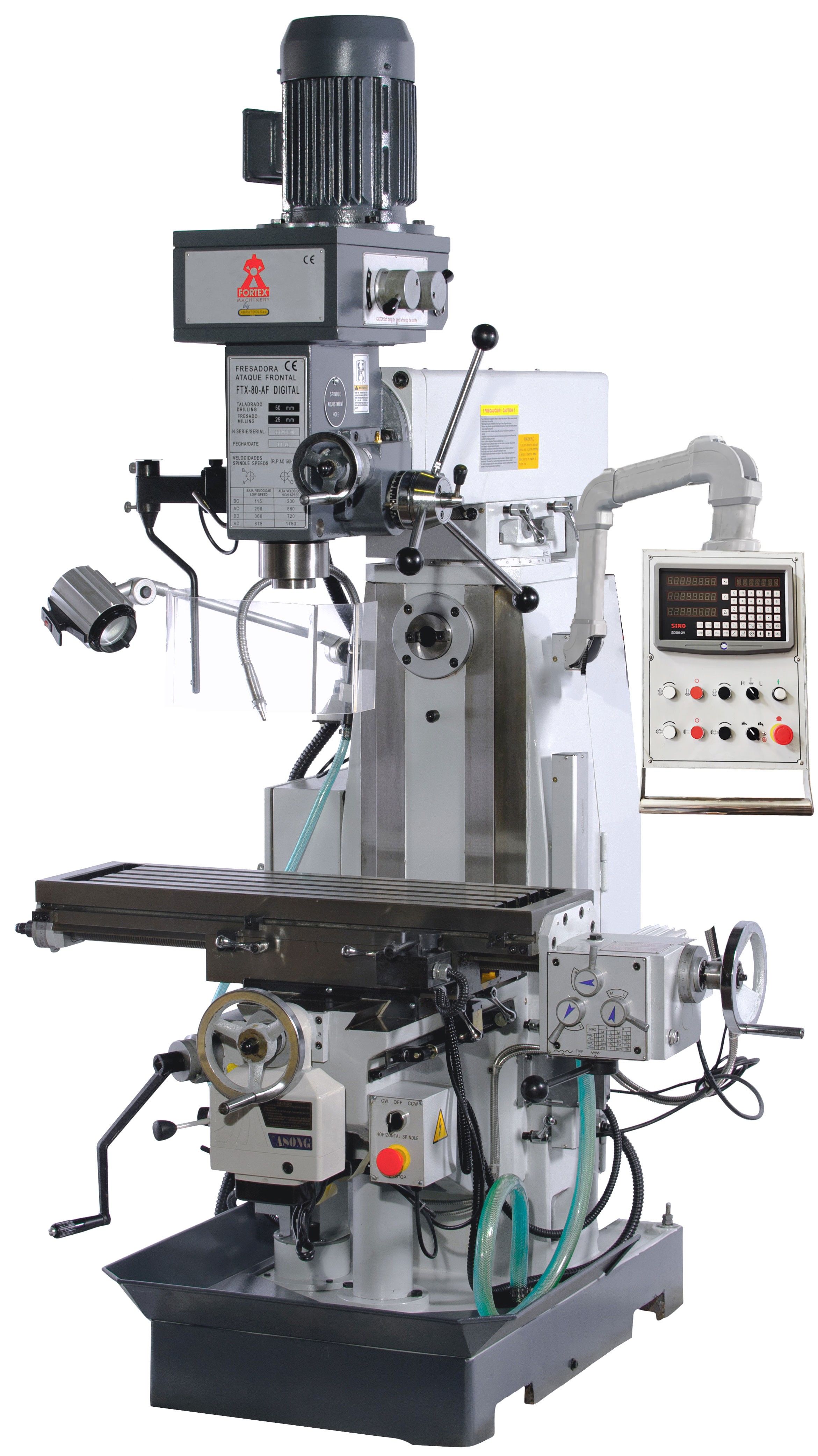 Brass avec attaque avant avec transmission robuste de rapports. Progrès automatique de l'axe X-Y. Cylindrée manuelle Z. La colonne de queue de Millan. Table de coordonnées haute précision. Coordonnateur téléspectateur. Tour de tête +-90o. Machines fabriquées selon les normes CE.