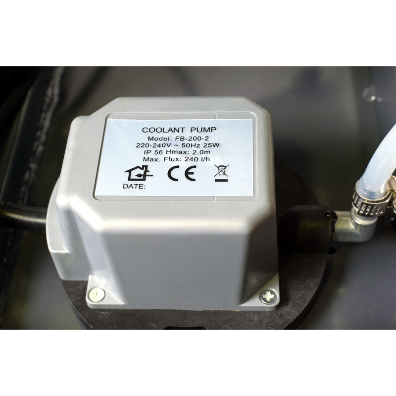 Tête rotative 0-60º. Jaw d'action rapide. Pompe de réfrigération. Facilité de réglage de l'angle de coupe. Guide de feuilles reposant sur un train de roulements à double boules. Indicateur de tension de feuilles. Emergency switch Cover opening safety switch. Machine Fabicada Selon les normes de la CE.