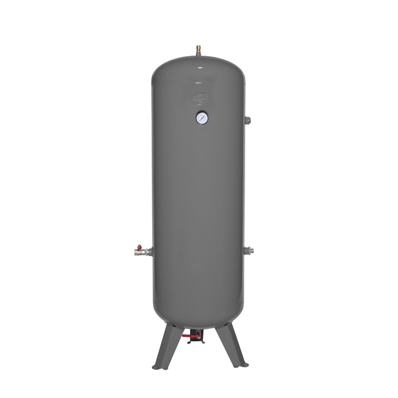 Vertical 270 L Calderín avec accessoires complets, idéal pour le stockage et la distribution efficace de l'air comprimé dans des ateliers et des systèmes industriels. Conception compacte et résistante.