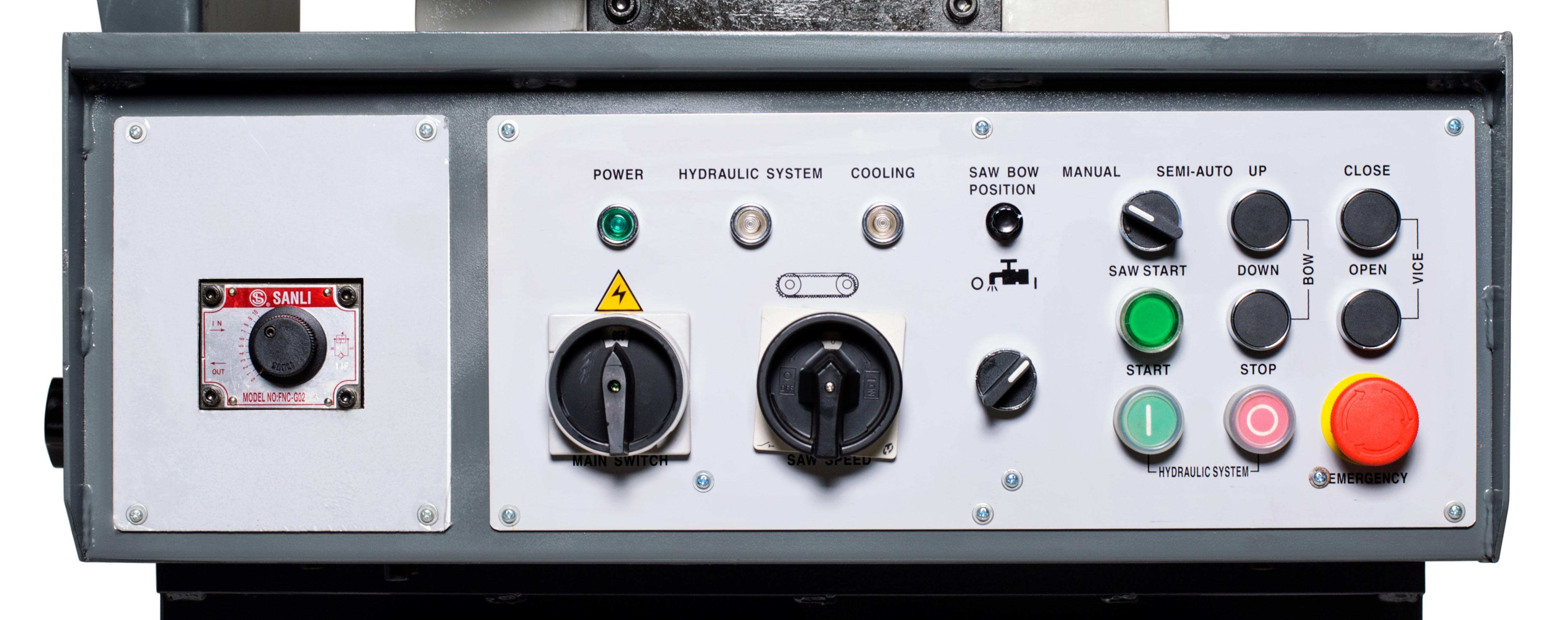 Mordité d'action rapide hydraulique. 0-60o tête rotative, 45o ±. Pompe de réfrigération avec double circuit Reposez par piston hydraulique. Installation d ' ajustement des angles de coupe. Arrêt automatique à la fin de la coupe. Guides sur le dos à double bille. Brosse de nettoyage des lames métalliques. Interrupteurs d'urgence, sécurité de tension de la lame et sécurité d'ouverture du couvercle. En bas et en haut de la tête automatique. Manomètre. Machines fabriquées selon les normes CE.